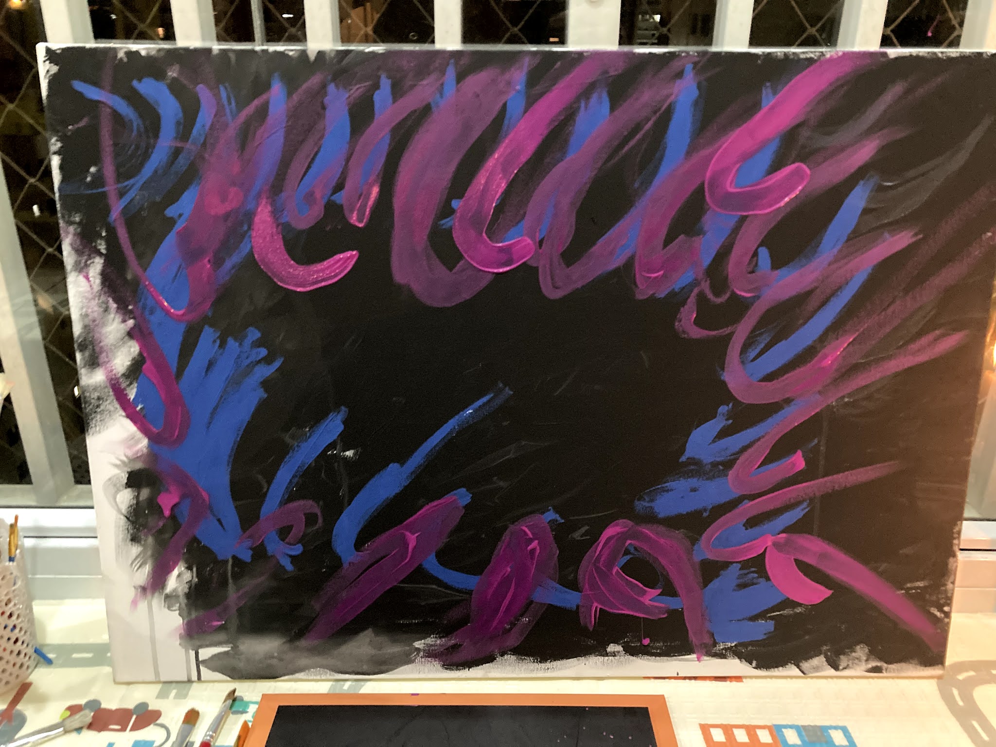 Visualmente a segunda tela tende a ser mais agradável. Decidi me aventurar na tinta a óleo por acreditar que ela me daria a fluidez e a abstração mágica que estou buscando.