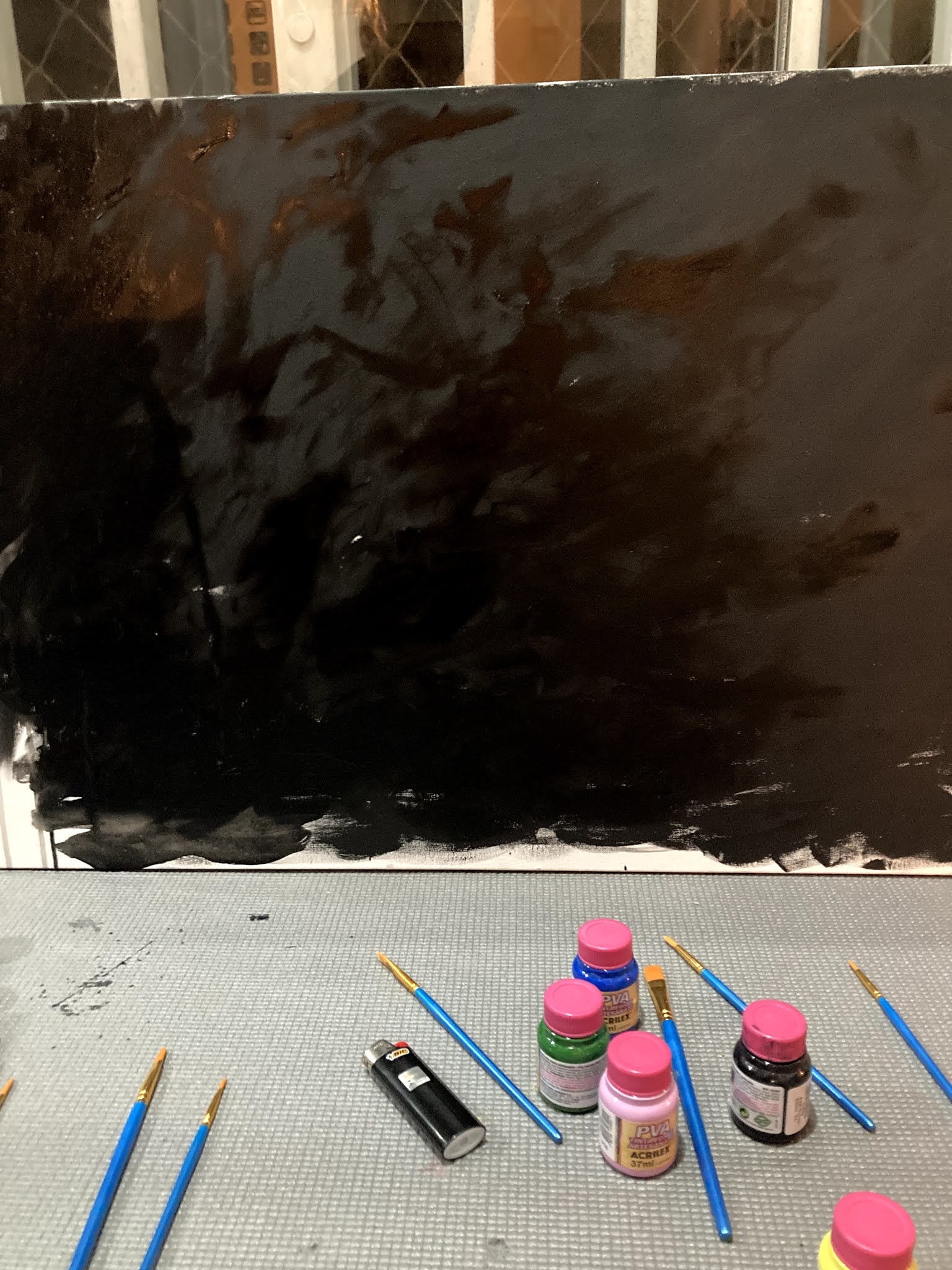 Hoje voltei a pintar as tentar visitar as memórias do coma de 5 anos atrás. Nada falei sobre como foi construir e finalizar a primeira tela.Então já era hora.